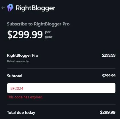 Just signup for an account on the RightBlogger website, then add the items you want to buy to your cart. Wait a few days without completing the payment. In our experience, RightBlogger tends to send exclusive discount codes to encourage you to complete the transaction. This is an effective method that many customers have successfully applied.